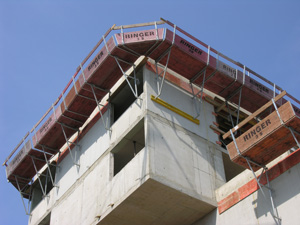 Podižemo je uz pomoć dizalice koja je standardna oprema na objektima višim od pet katova. Nosivi elementi konstrukcije penjajuće oplate su čelični. Time se osigurava robusnost i trajnost sustava.